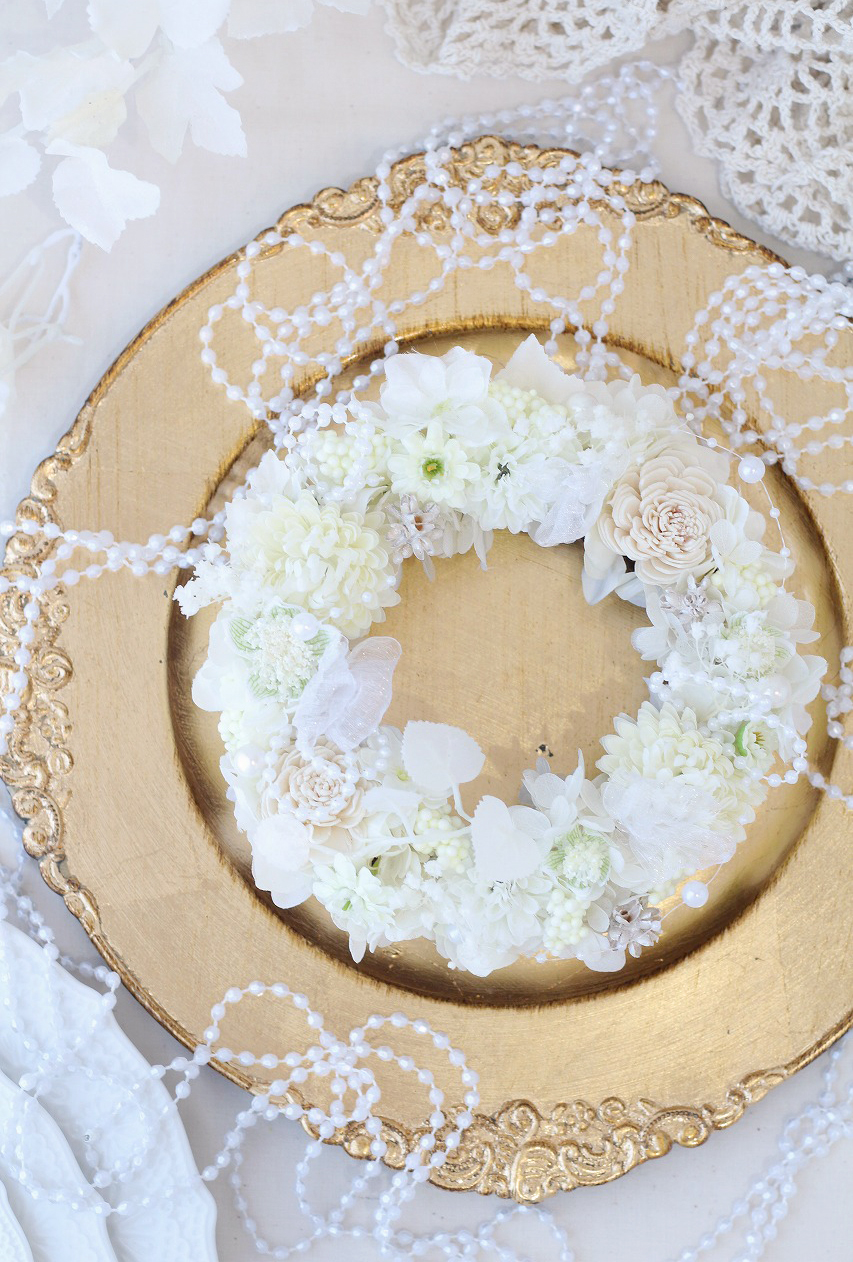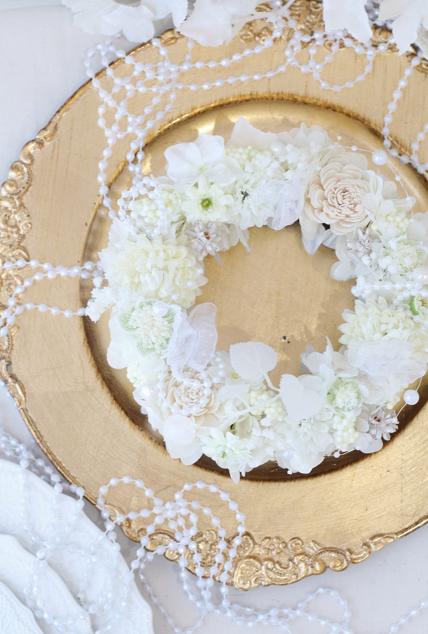 ホワイト尽くしのクリスマスリースとアレンジが完成しました~