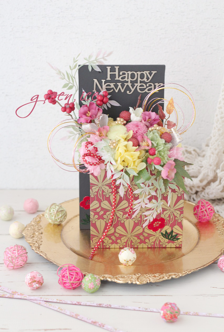 お正月アレンジは、レッスンメニューのものたちを販売させていただいています。