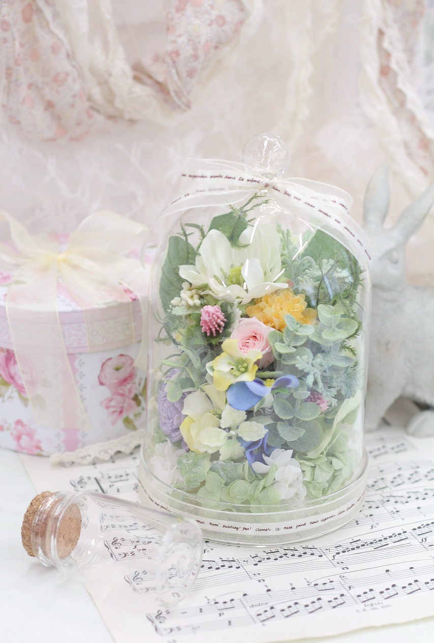 ここからは、マルチカラーガラスドームアレンジをお作りいただきましたお客様方のお写真になります。