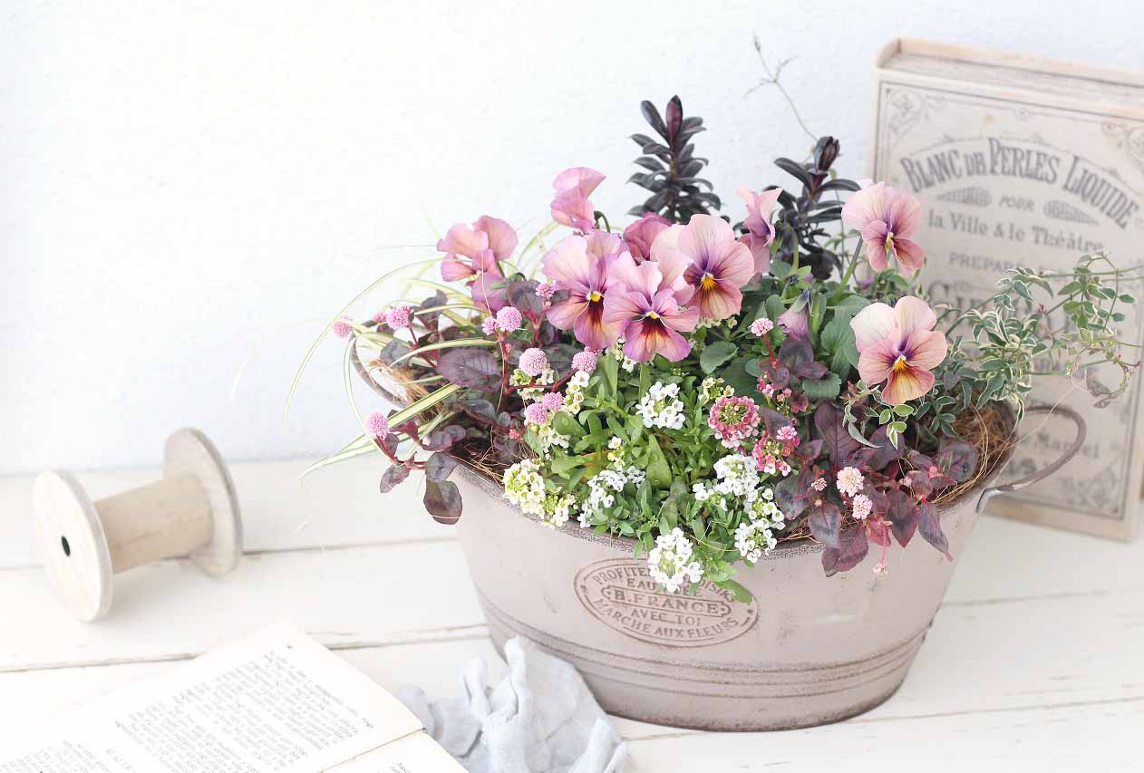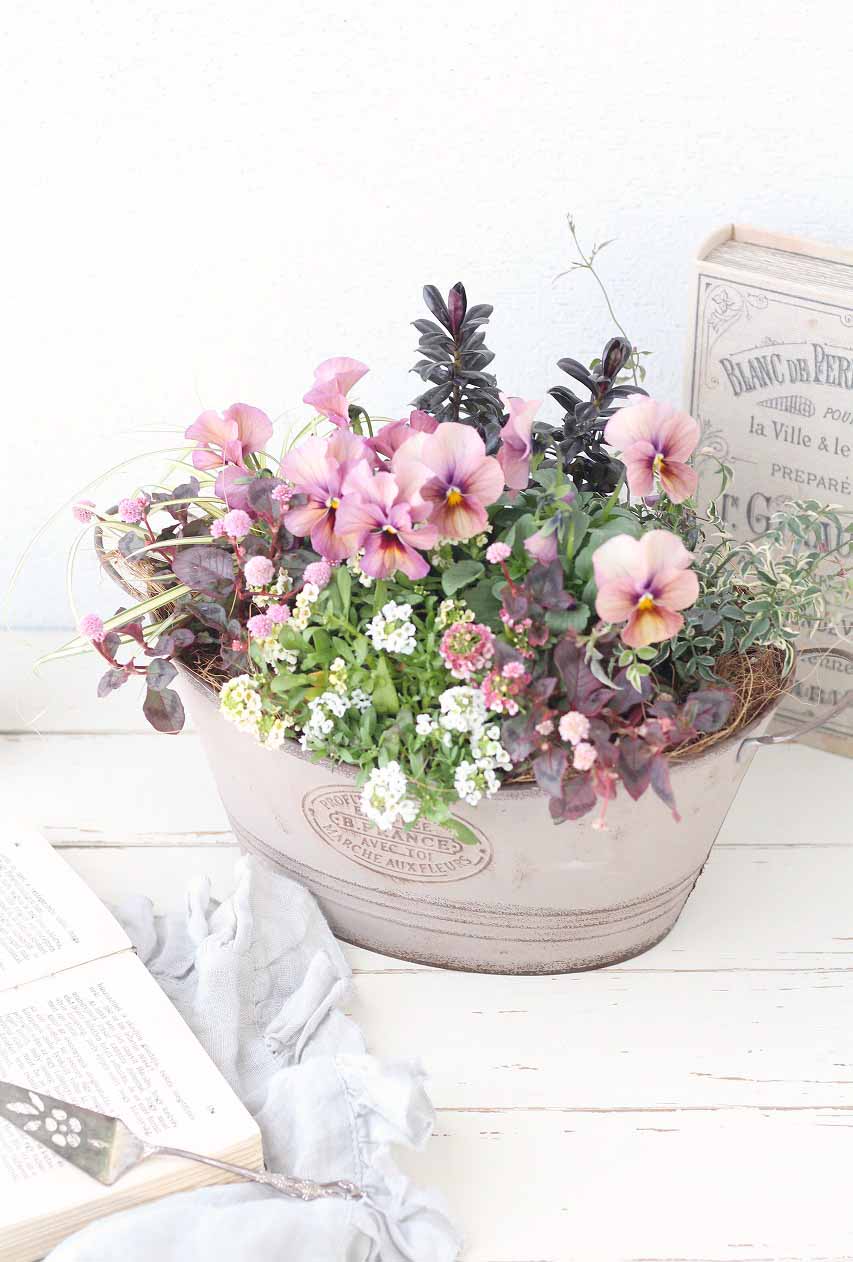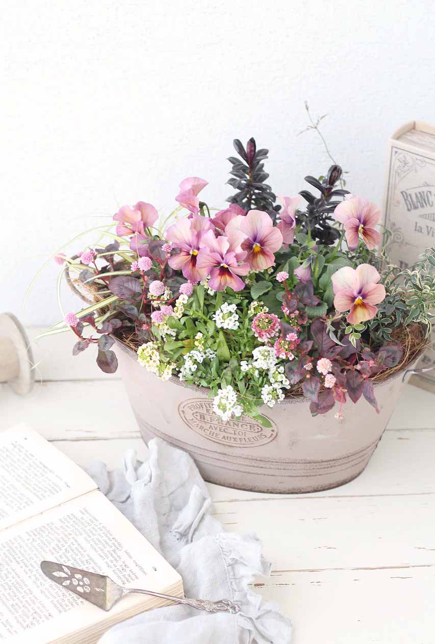 先日、園芸屋さんをぶらぶらして、苗3個と、多肉植物1個、そして、この寄せ植えを買った私です。