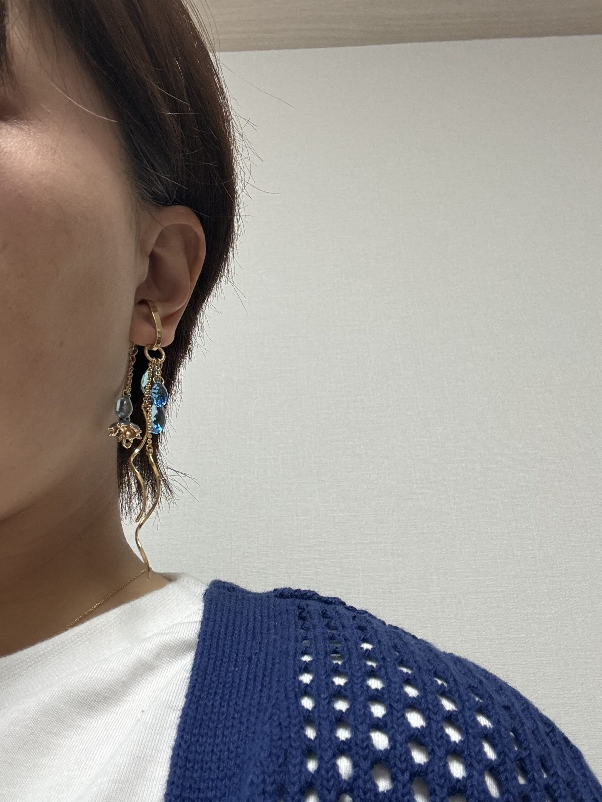 初めて作ってみたイヤーカフ、アンブレラブルーイヤーカフ