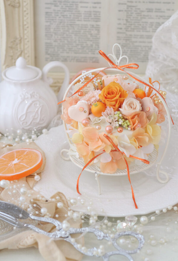 午後からは、オレンジハートマカロンケーキアレンジ、お作りいただきました!