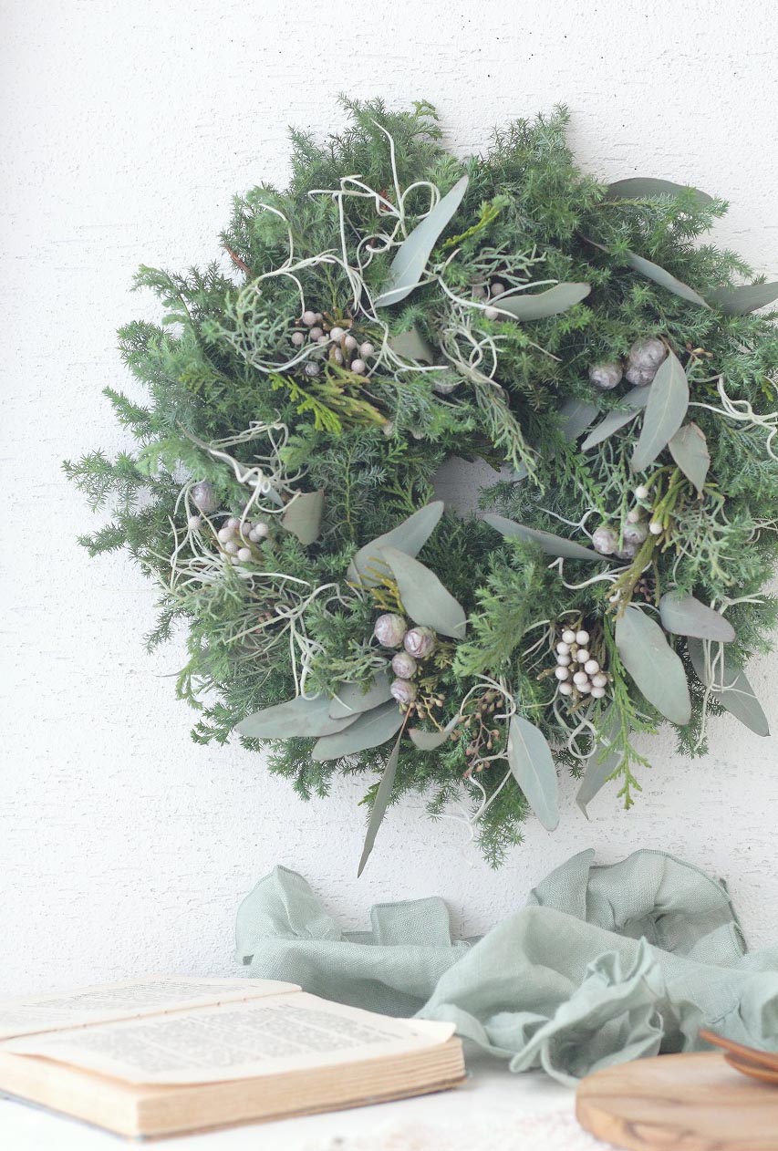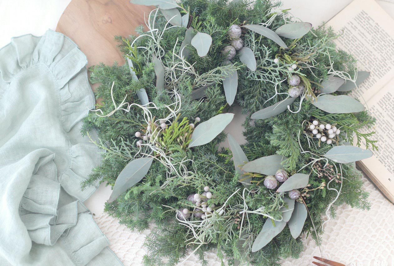サツマスギ、ヒノキ、ブルーアイス、シルバーブルニア、トータム、ユーカリポポラスベリー、スパニッシュモス、を使っています。