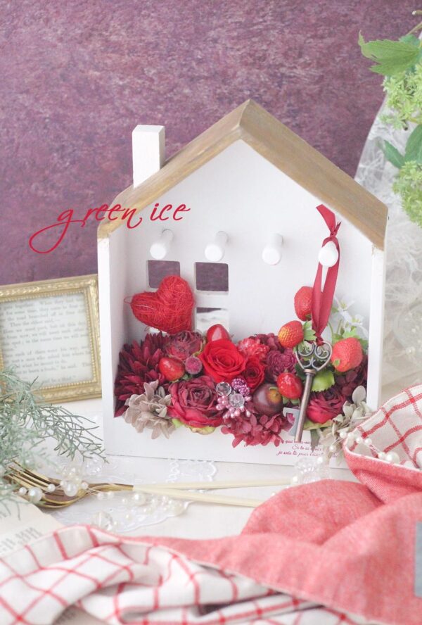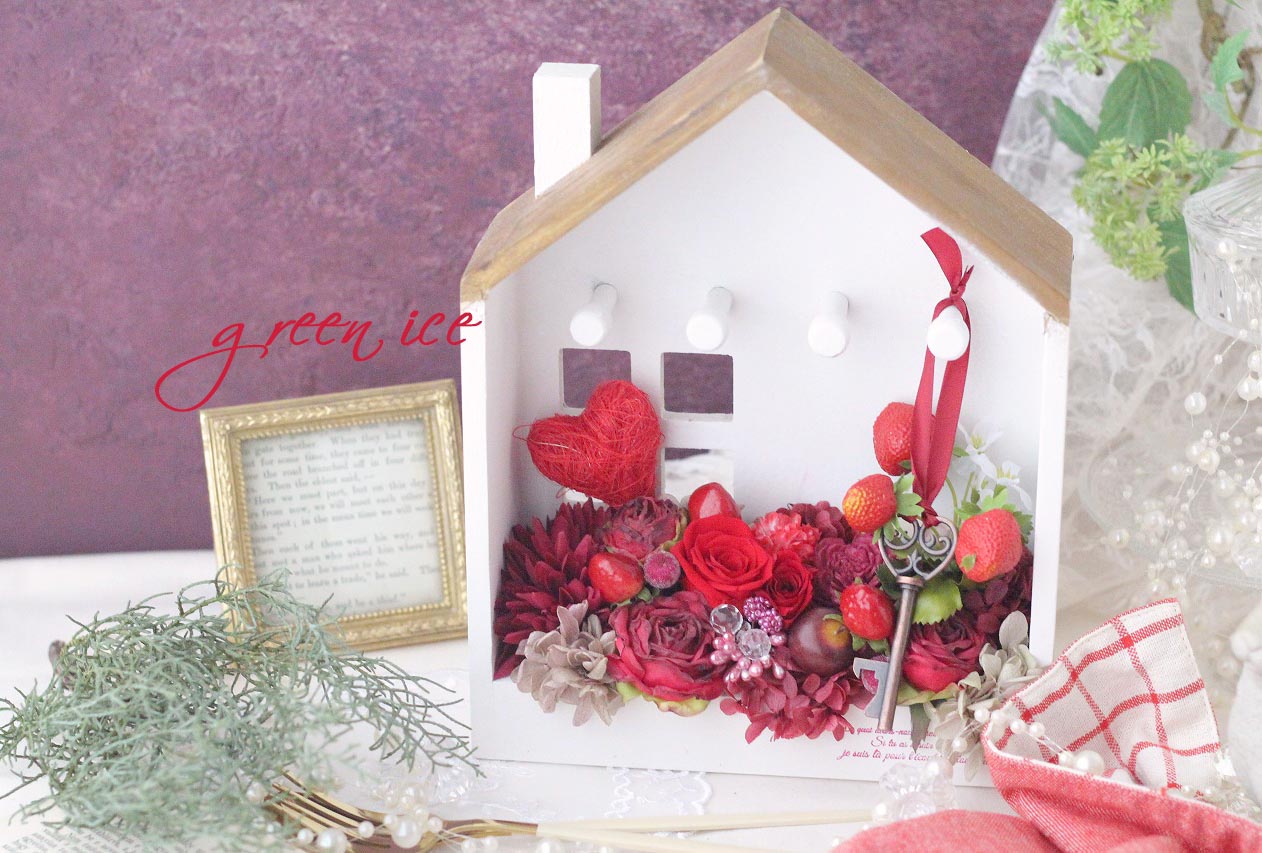 写真は、ギフト発送させていただきました、レッドハウスボックスアレンジになります。