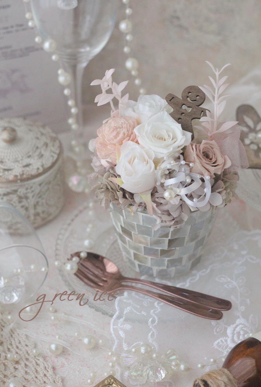 写真は、先日、ギフト発送させていただきました、みっつめの、ジンジャーマンフラワーアレンジになります。