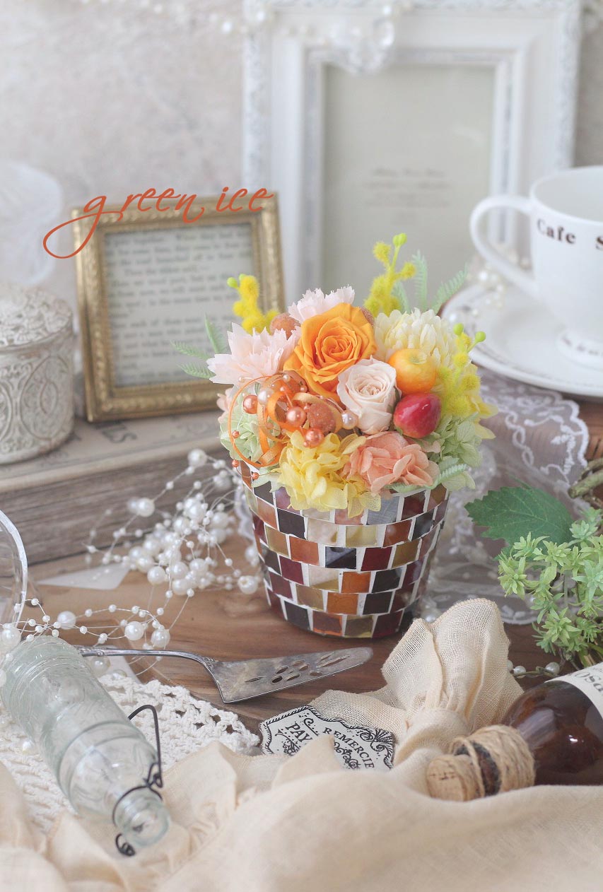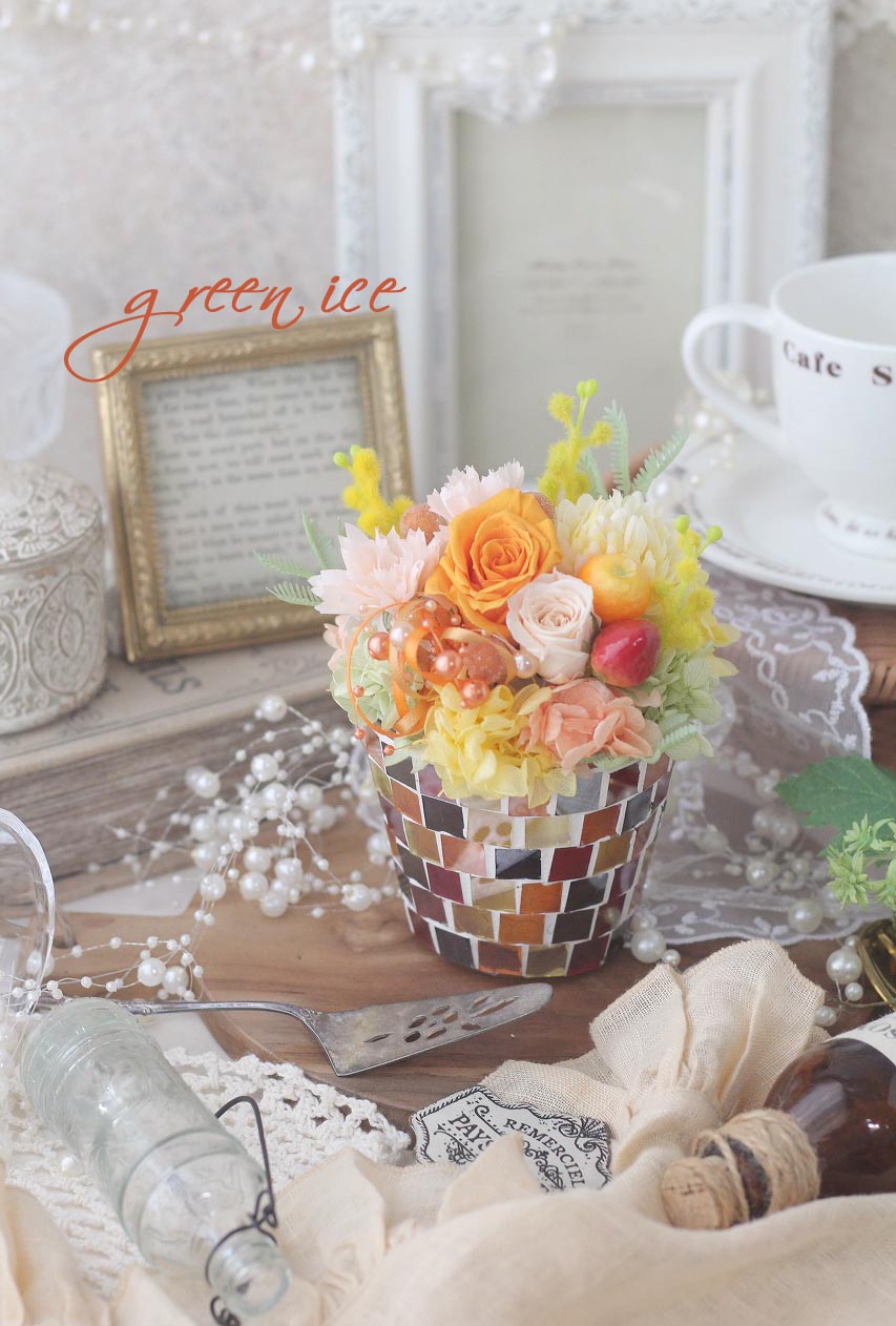 ギフト発送、ミモザカラフルガラスモザイクアレンジふたつめ