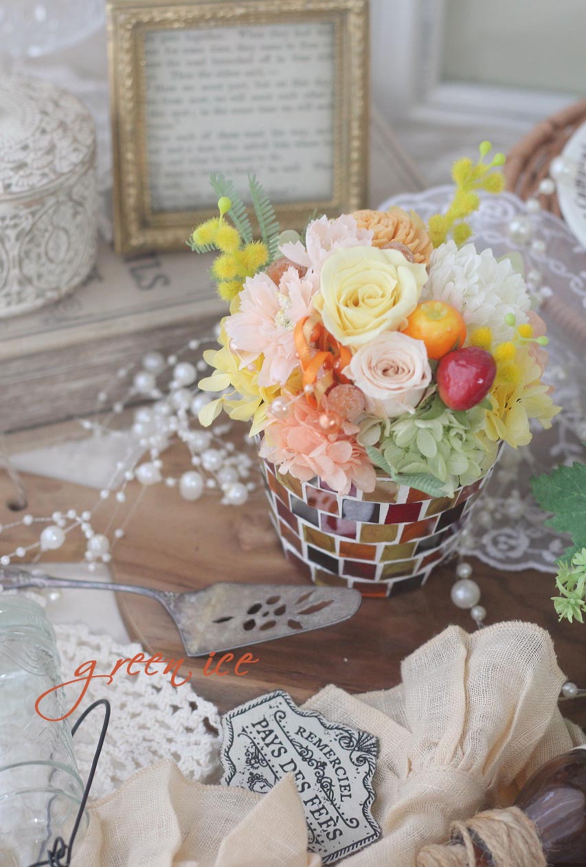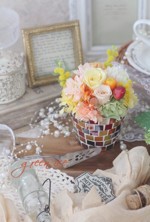 ギフト発送、ミモザカラフルガラスモザイクアレンジ、よっつめ