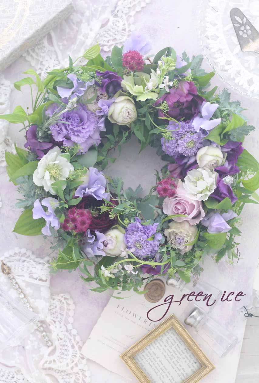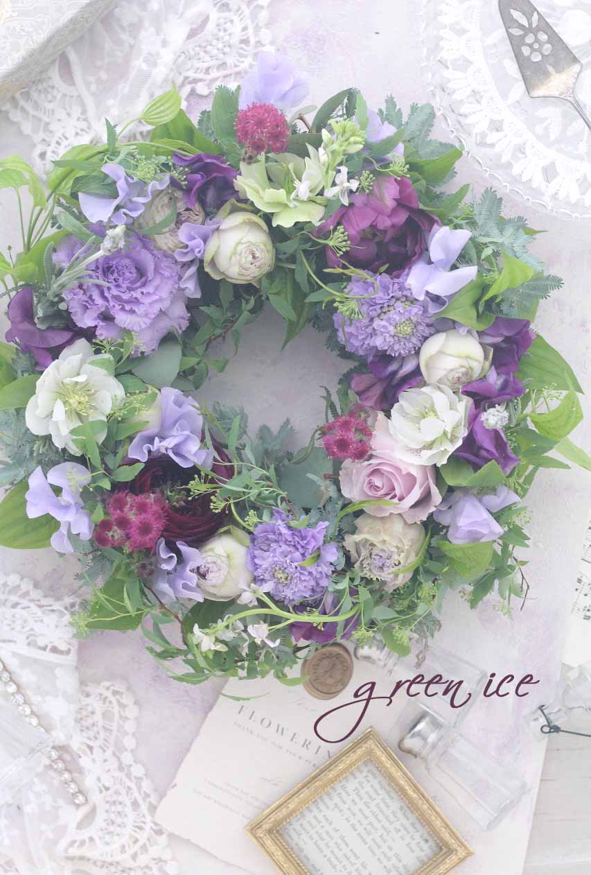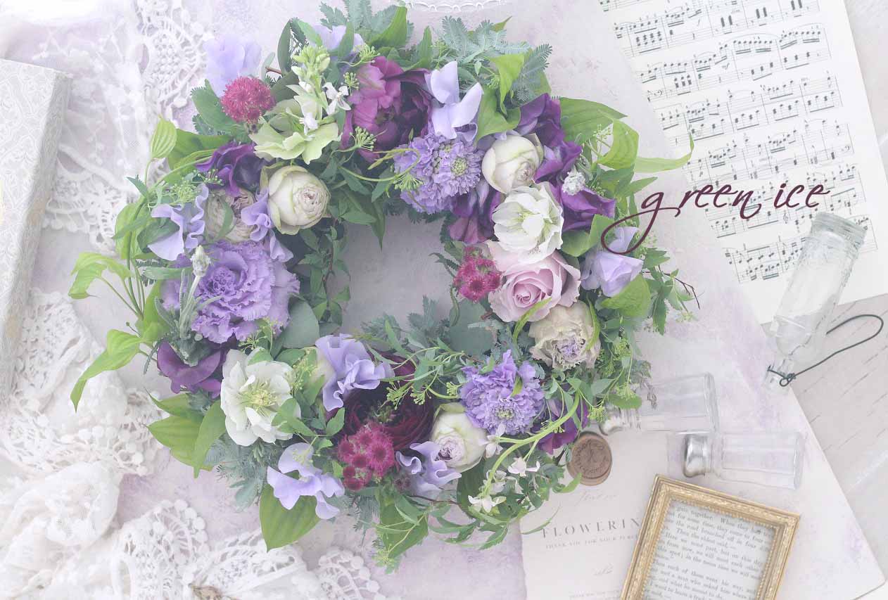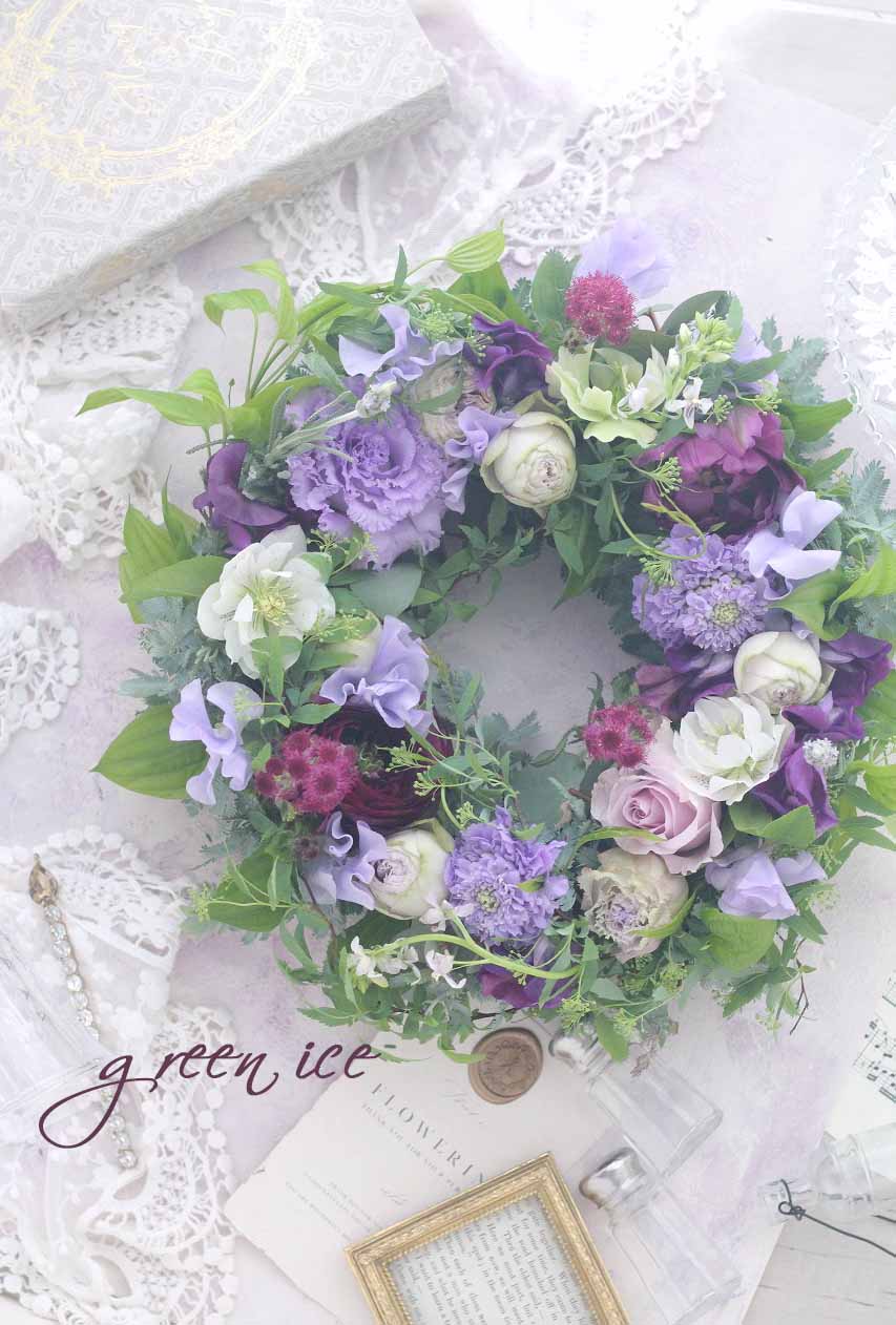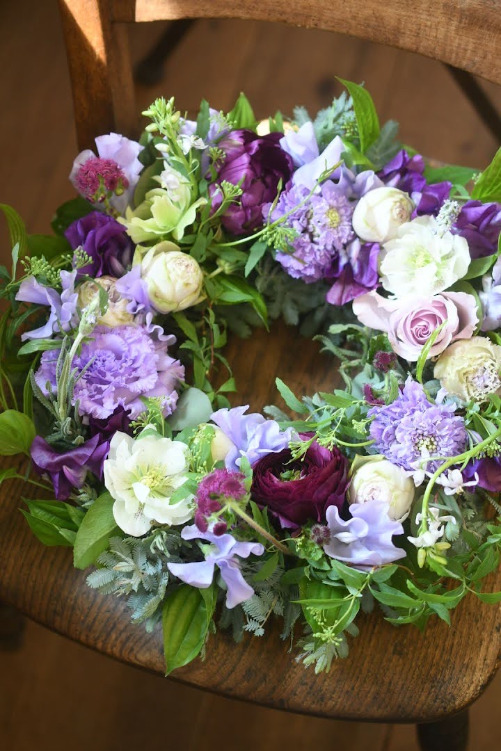 フレッシュフラワーを使って、パープルグラデーションカラーで、リースを作ってきました~