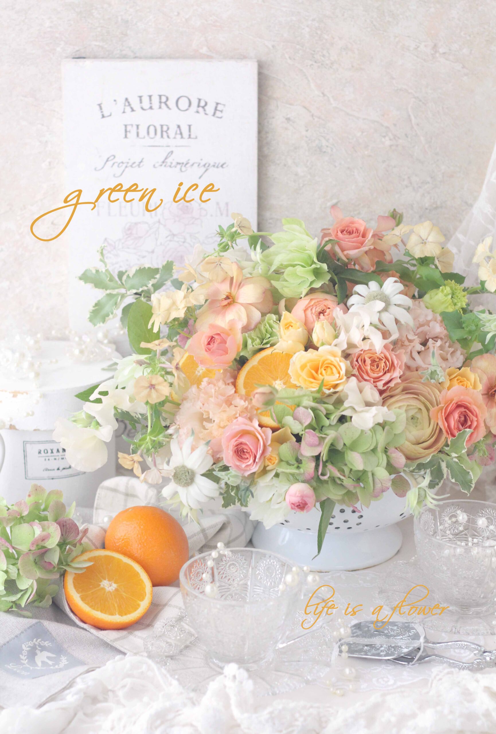 ポストカード、新発売・アプリコットオレンジコランダーアレンジ