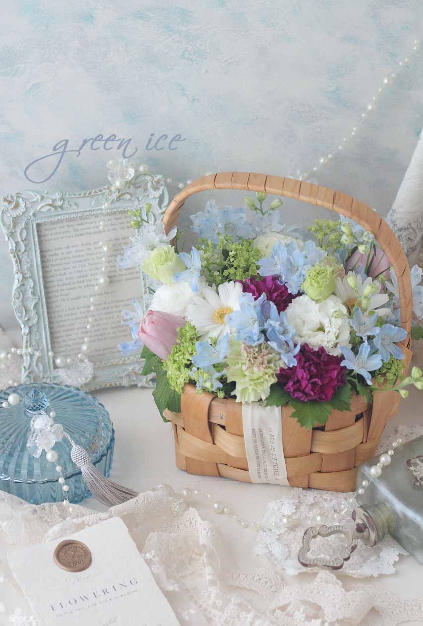 ええ、もたもたしているうちに、桜がダメになってしまい(汗)、残りのお花たちでバスケットにアレンジしたものになります。