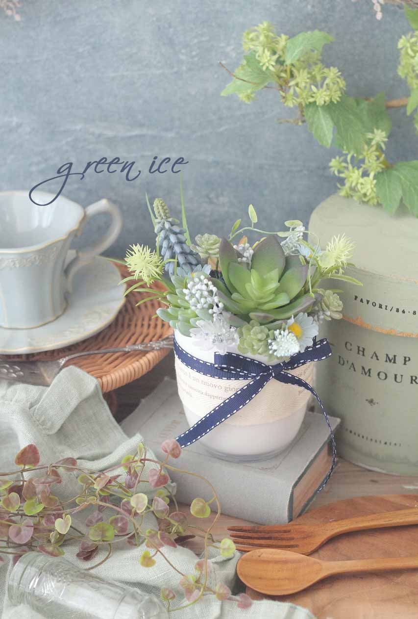こちらは、先日、ギフト発送させていただきました、2つ目の、アートグリーン多肉植物リボンカップアレンジになります。