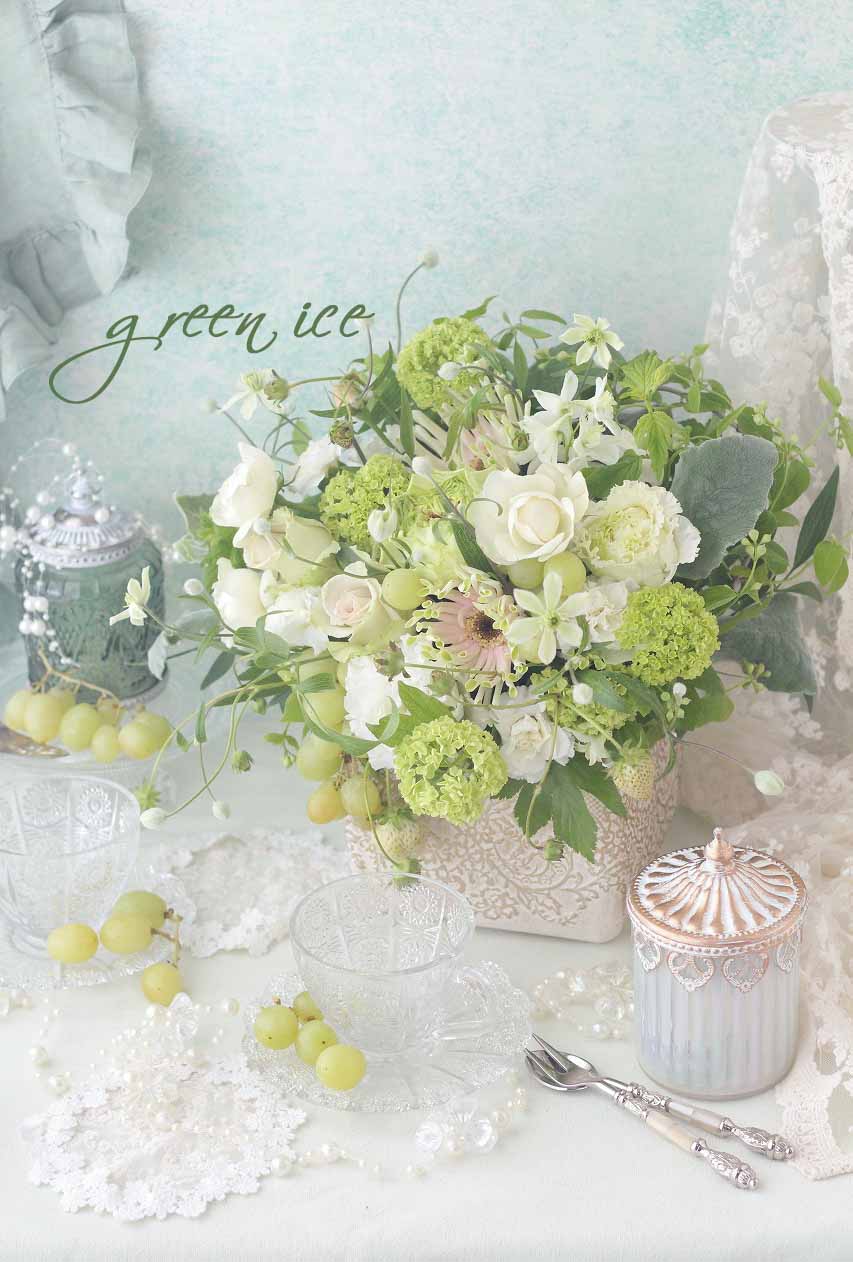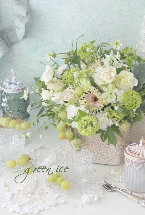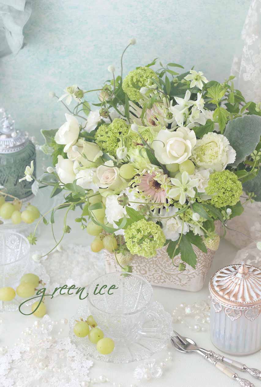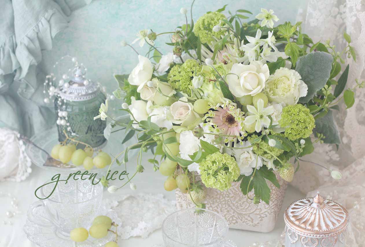 写真は、昨日のプライベートクラスで作った、フレッシュグリーンマスカットアレンジになります。
