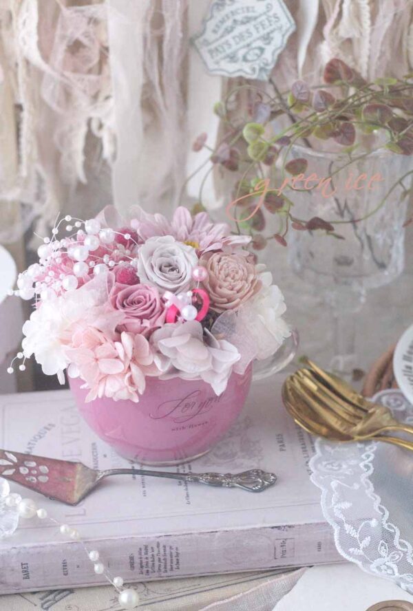 ギフト発送、オトナピンクハンドルカップアレンジ、4つ目