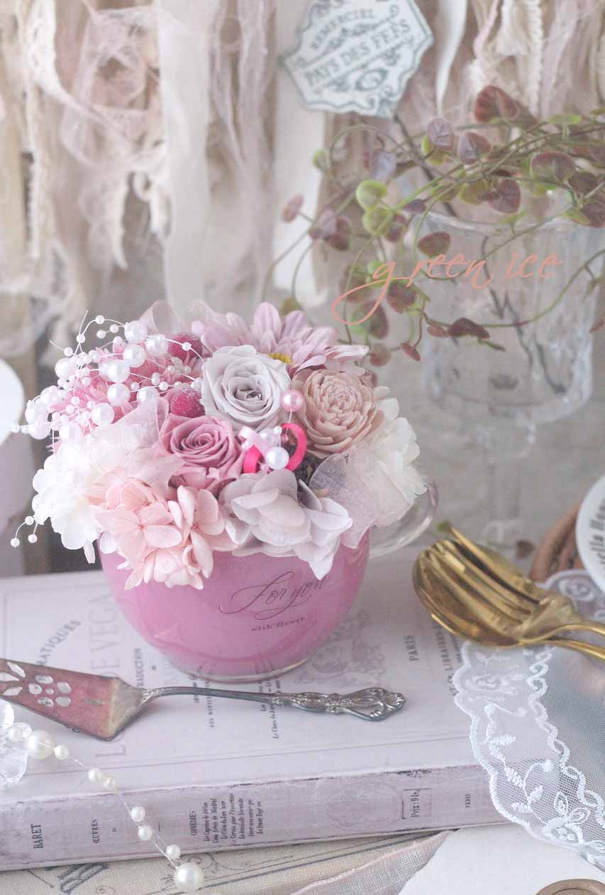 こちらは、少し前にギフト発送させていただきました、オトナピンクハンドルカップアレンジ、4つ目になります。