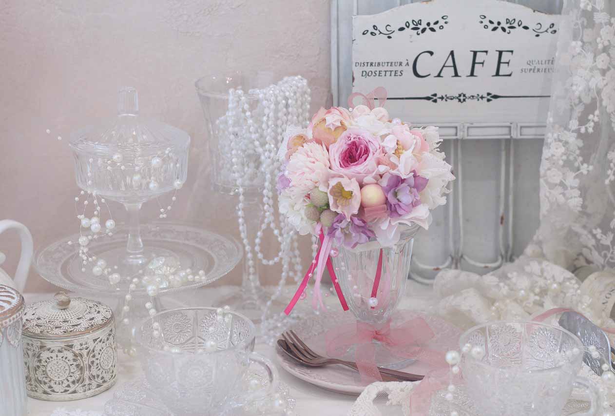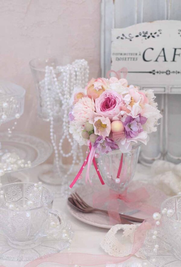 アトリエレッスン・ピンクガラスパフェアレンジ