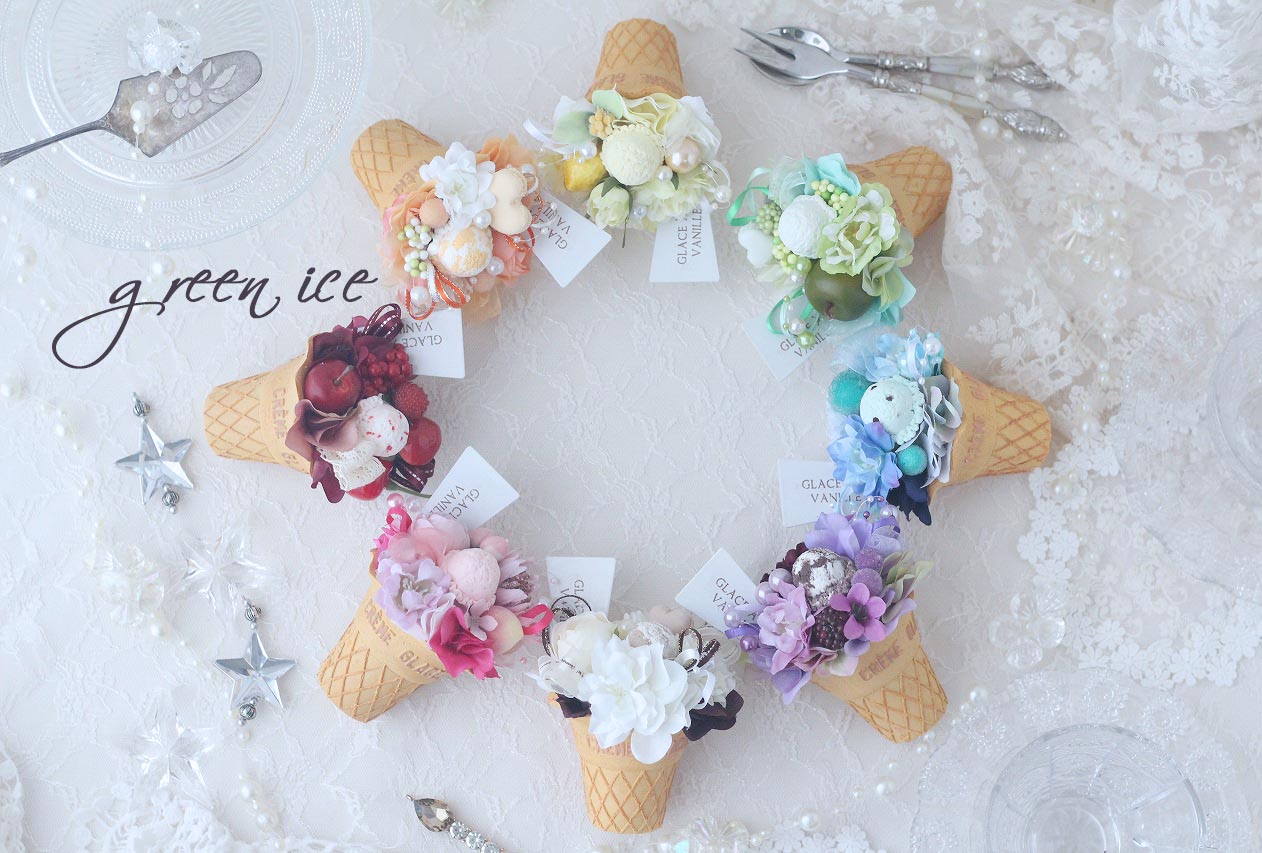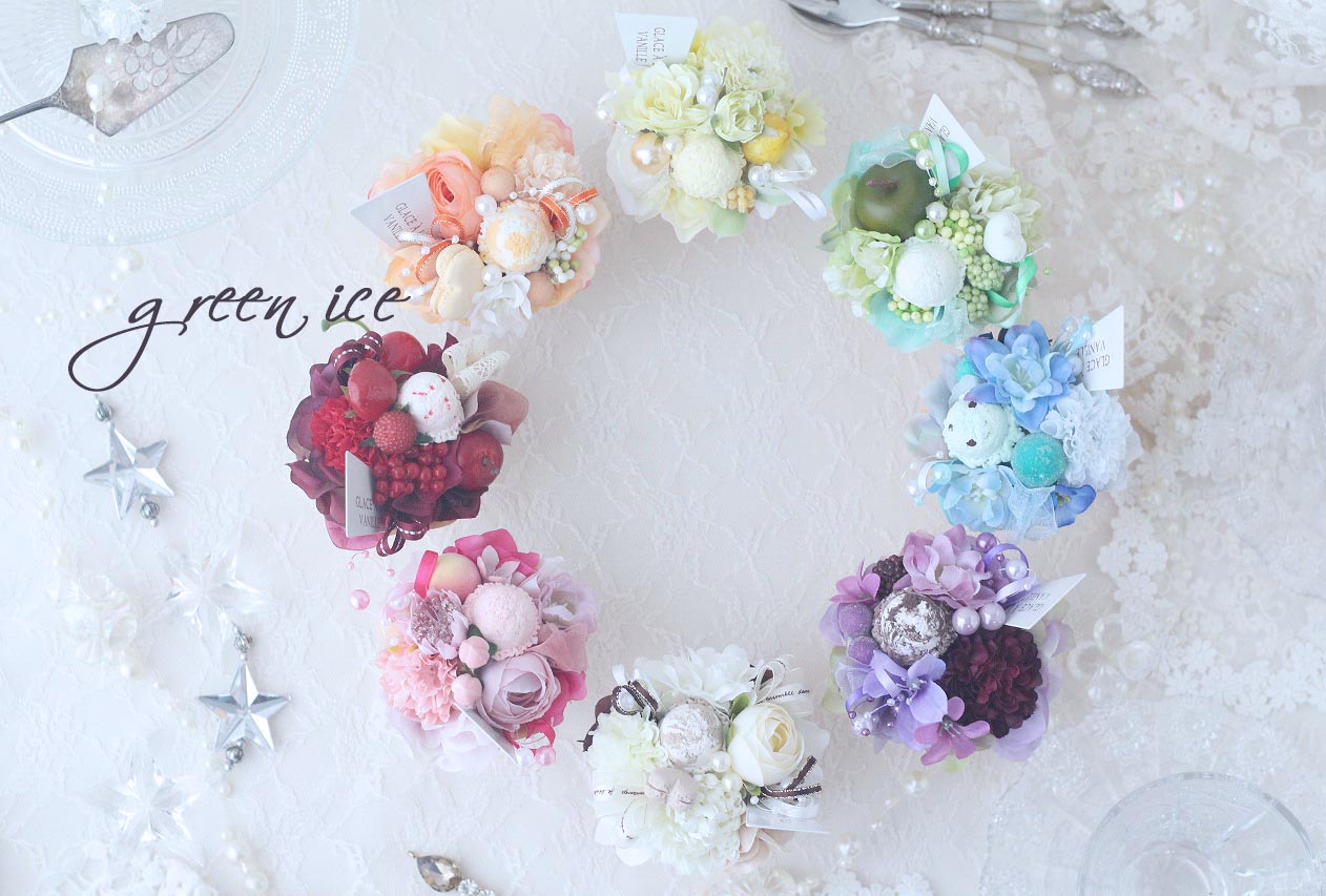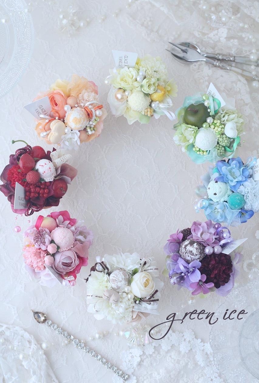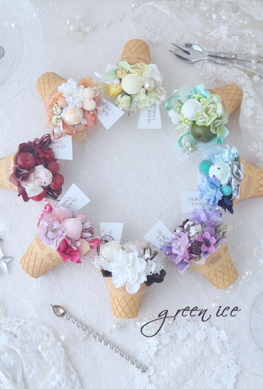 一昨日、一気に、残りのミニアイスクリームアレンジを完成させまして、昨日、全部で撮影してみました~