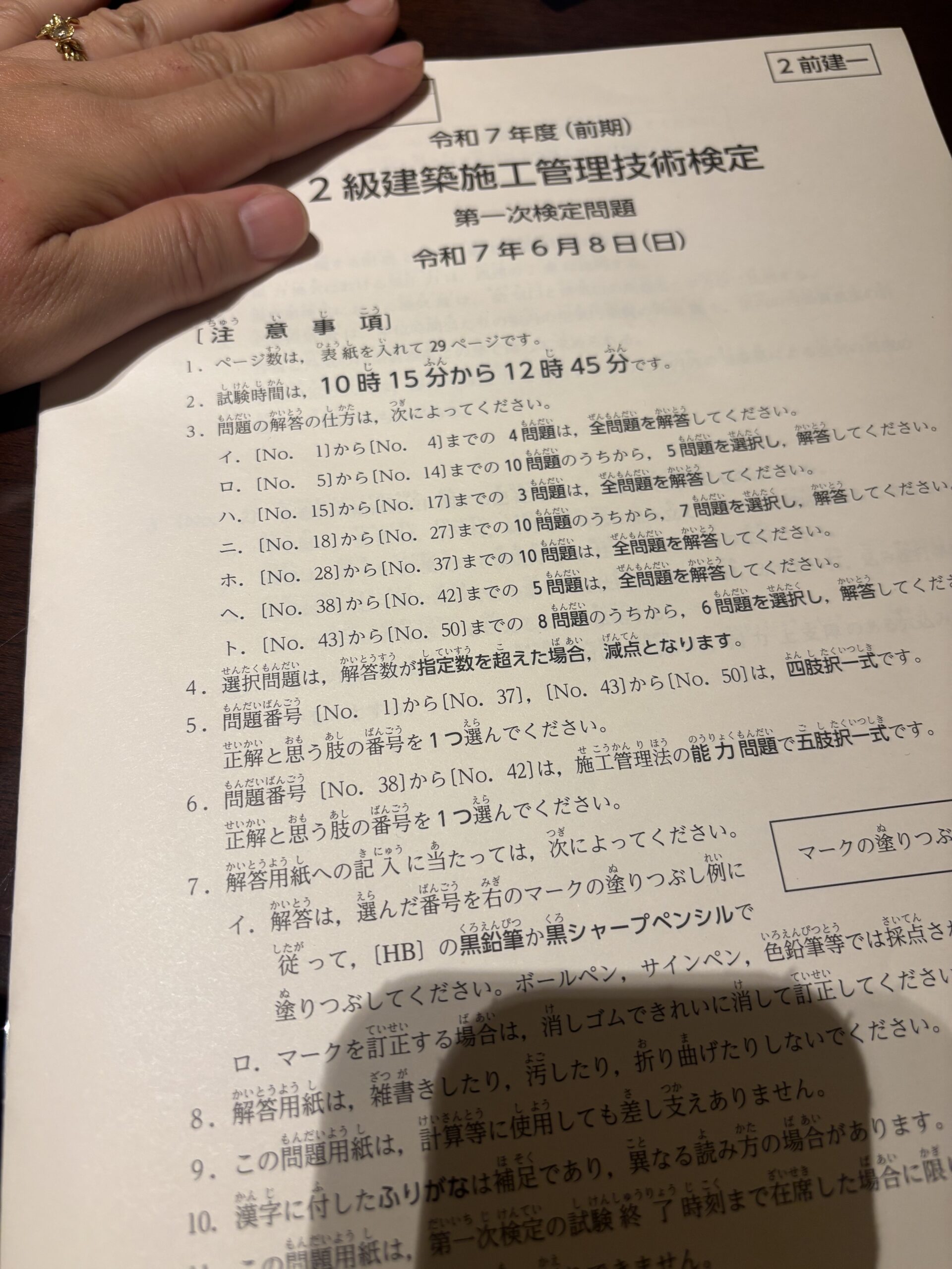 今日は、去年の秋ごろかな?から勉強していて、まずは、2級建築施工管理技士の一次試験、受けてきました~
