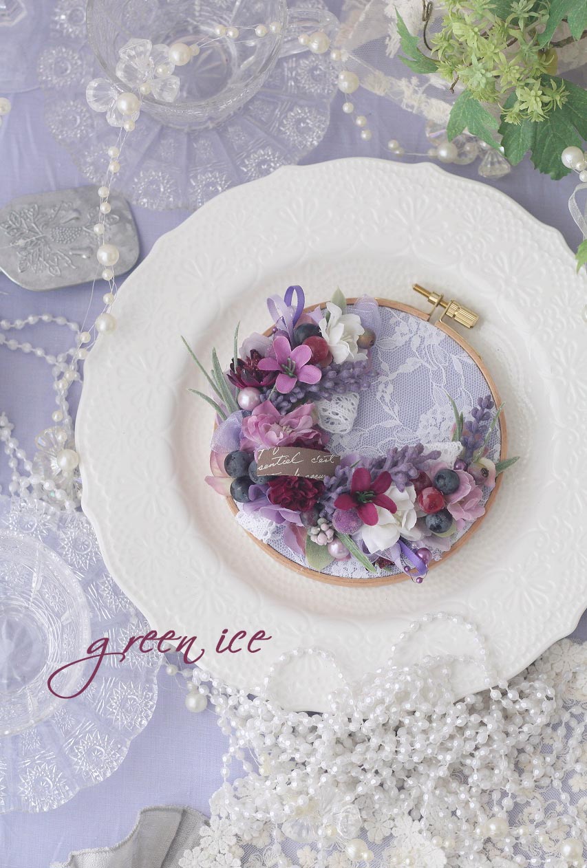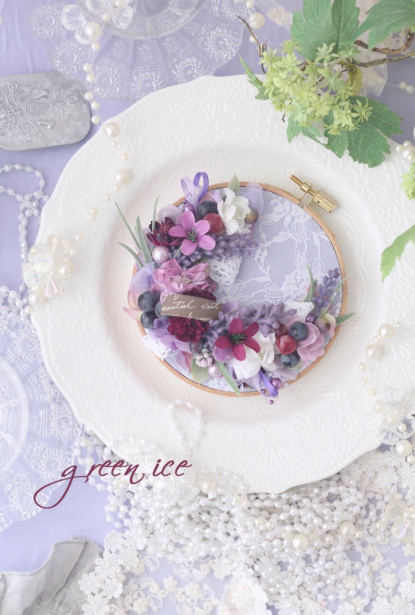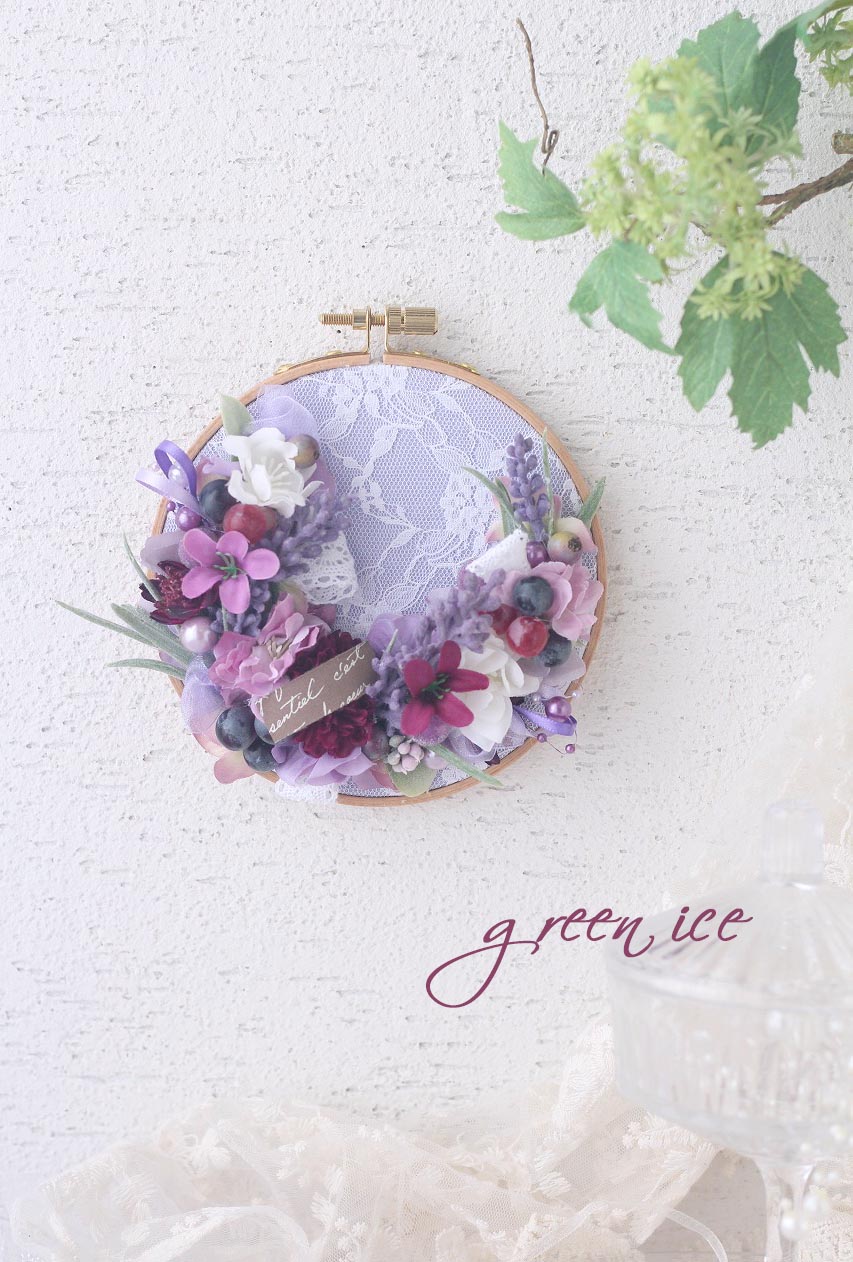 こちらは、刺繡枠のパープルフラワーリース<小>サイズになります。