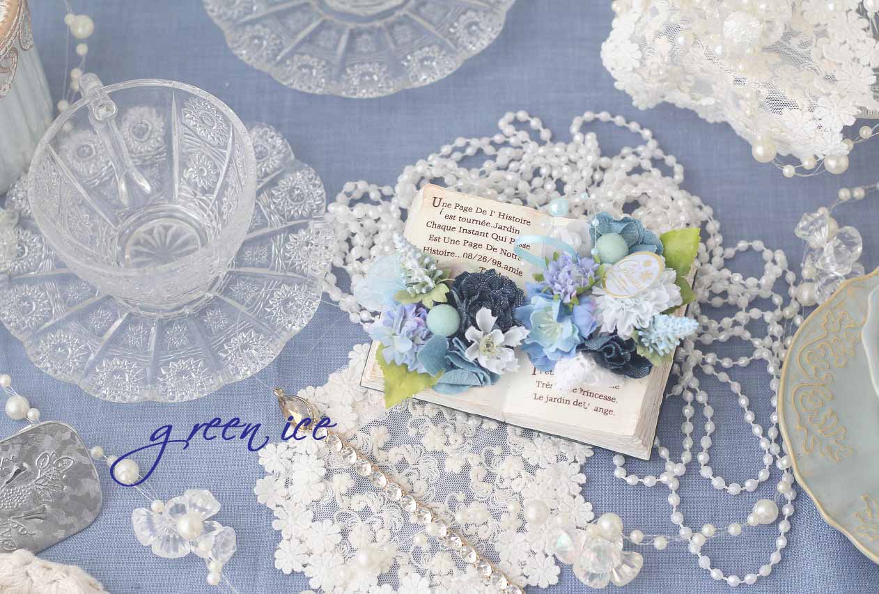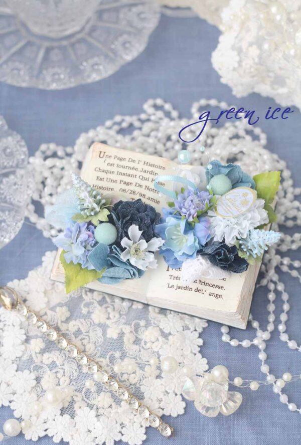 クリマお買い上げ作品、ブルーミニブックアレンジ