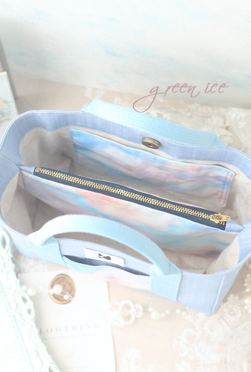 写真は、先日作った、ファスナー仕切付きミニトートになります。