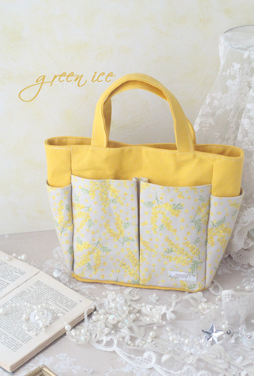 ポケットいっぱいトートバッグ<ミモザ>&フラワーリングのネックウォーマー