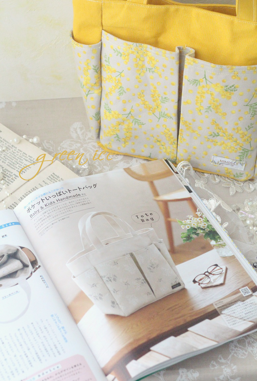 写真は、昨日の夜中に完成した、ポケットいっぱいトートバッグになります。