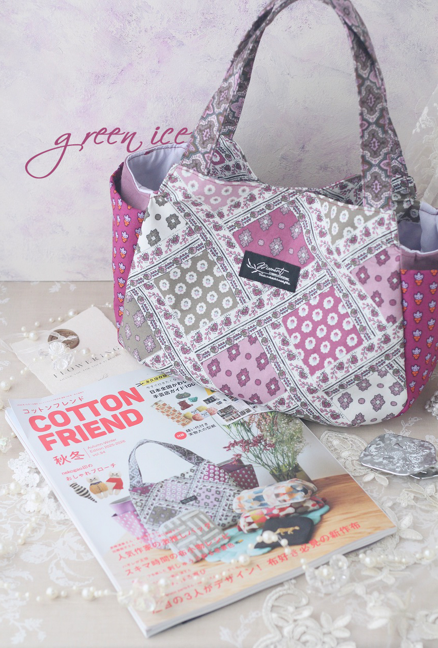 サイドポケット付きバッグ<パープル>、コットンフレンドさんを見ながら