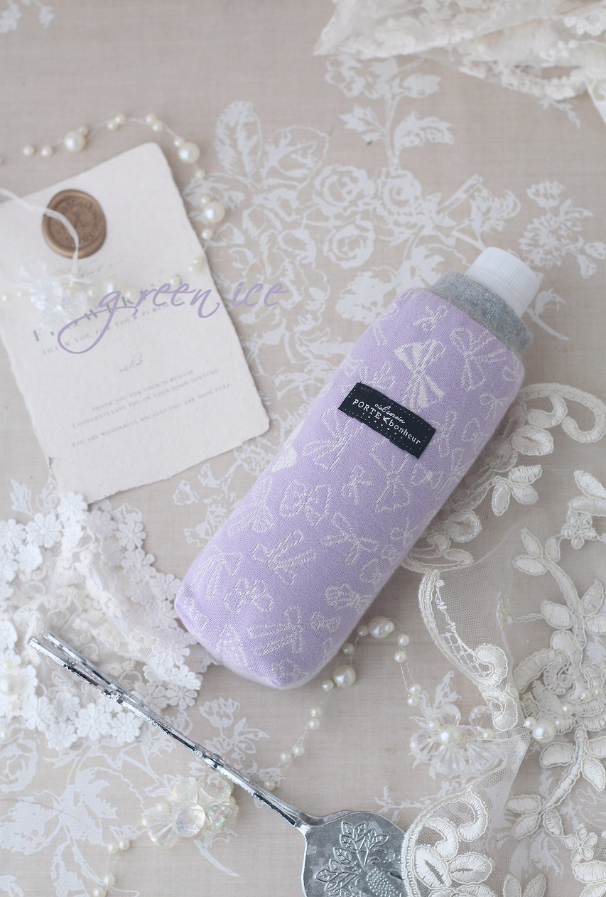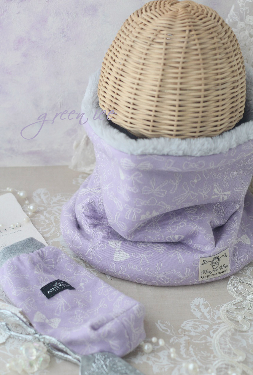ネックウォーマー&ペットボトルカバー<パープルリボン>