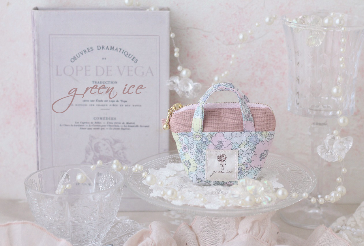 ハンドル付きマイクロポーチ、北川景子さん特別監修の花柄カットクロスを使って