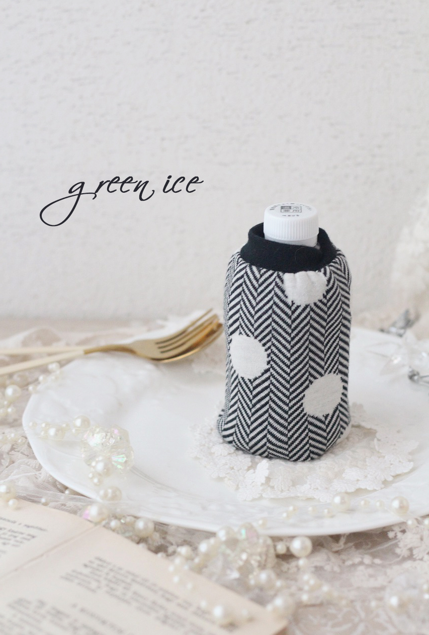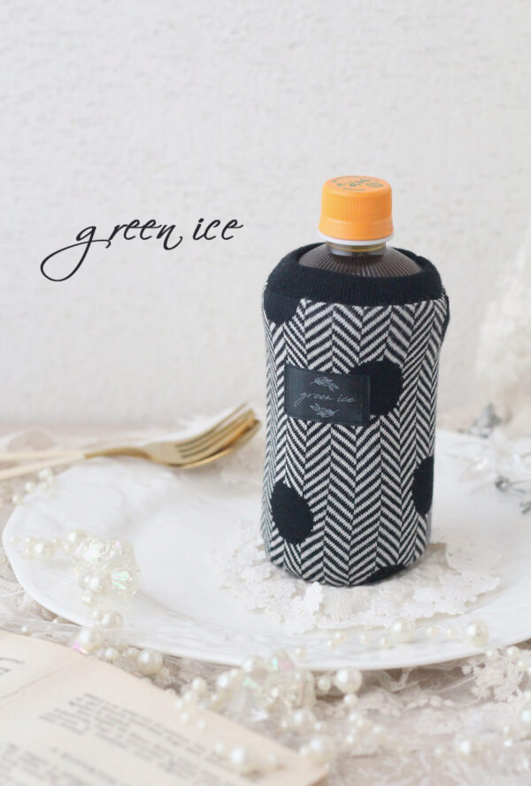 maffonさんのジャガードニット生地を使って、リバーシブルで制作した、ミニサイズのペットボトルカバーです。