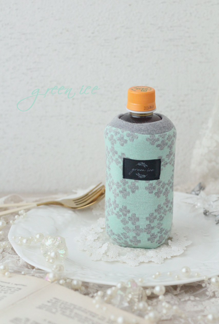 ・ミニリバーシブルペットボトルカバー<グリーンフラワーサークル>