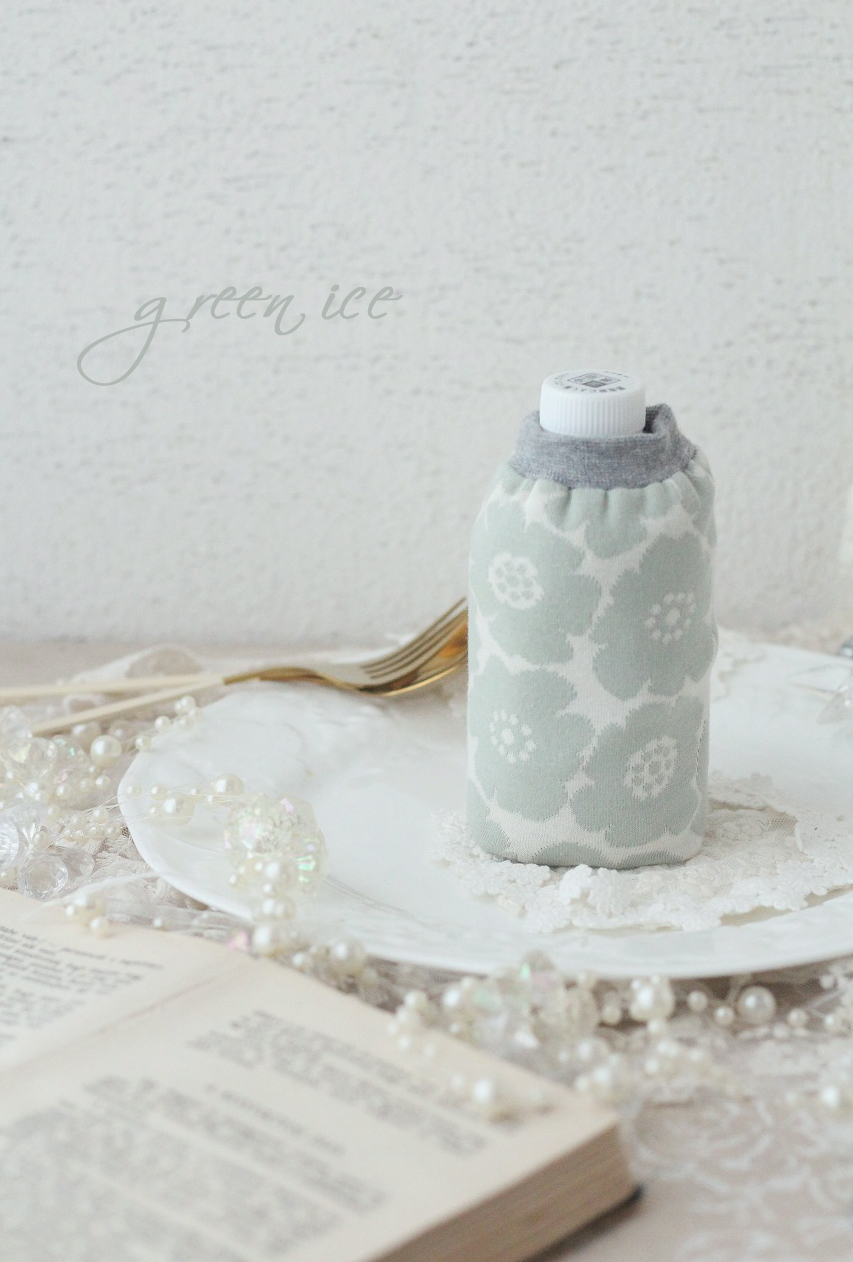 ・ミニリバーシブルペットボトルカバー<グリーンホワイトアネモネ>
