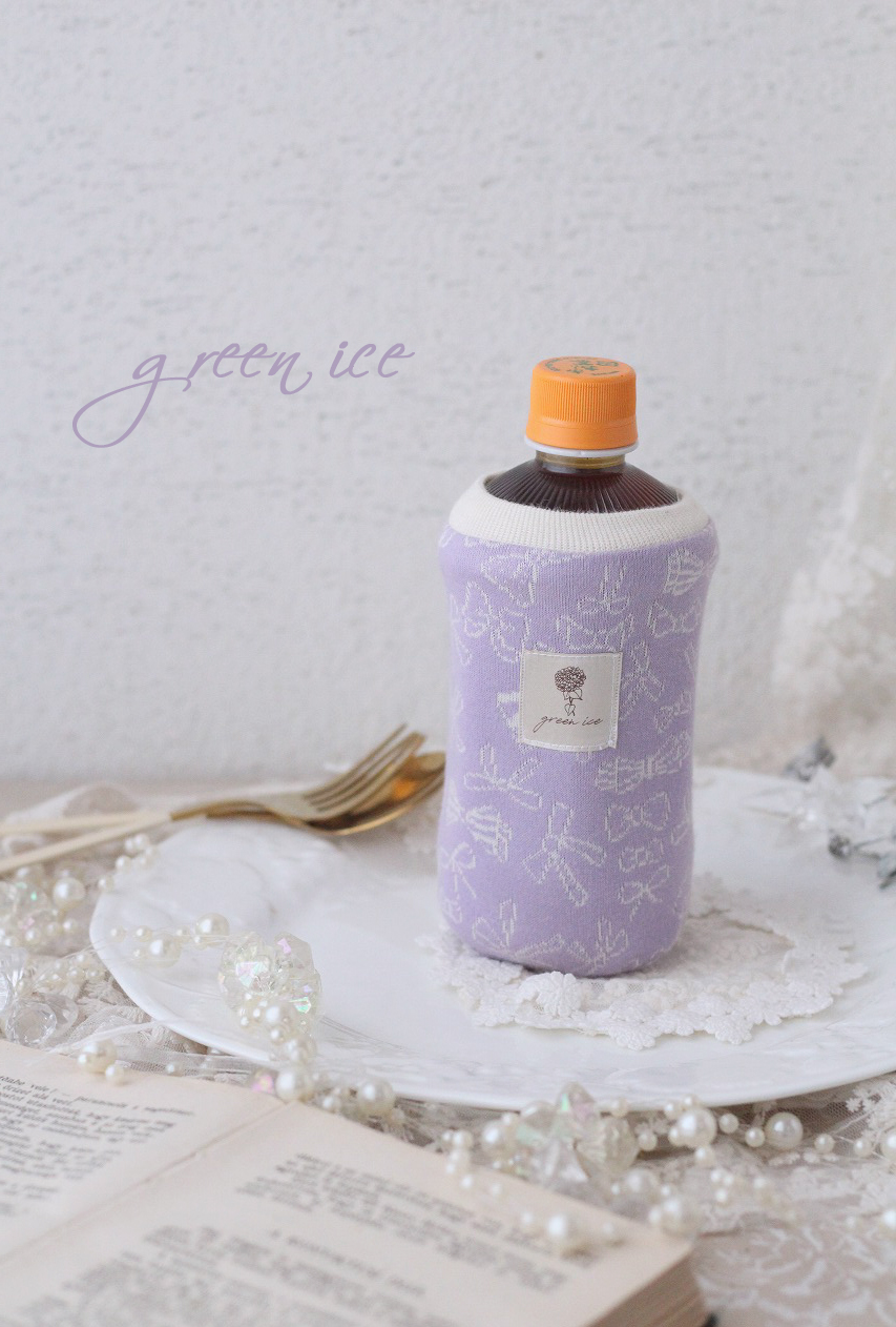 ・ミニリバーシブルペットボトルカバー<パープルリボン>
