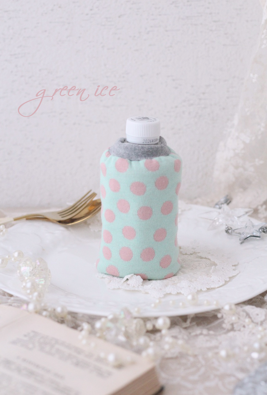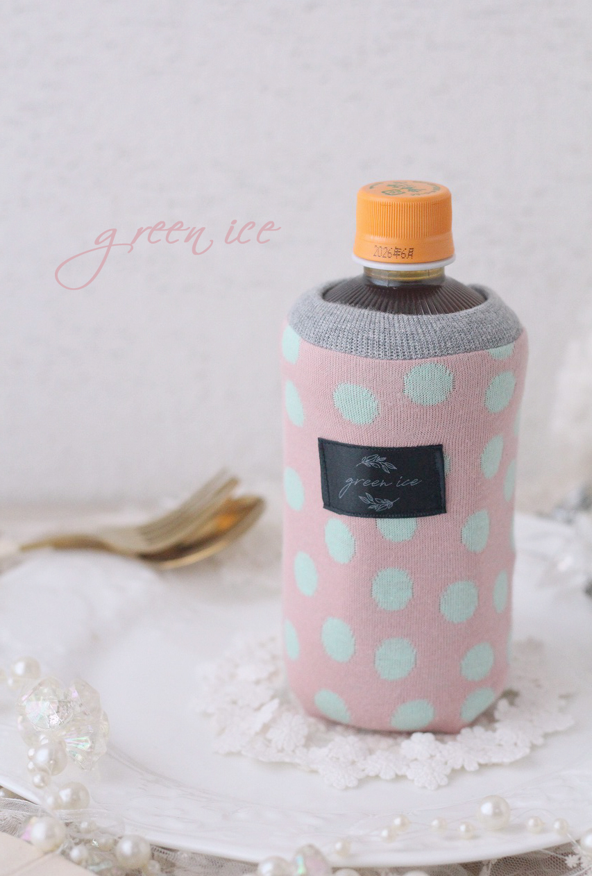 ・ミニリバーシブルペットボトルカバー<ミントグリーンピンクドット>