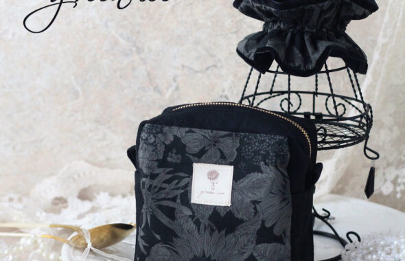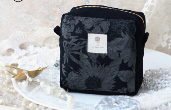 先ほど、こちらの写真のリバティ生地のボタニカル柄のスクエアポーチと、シュシュ、そして、朝焼け空色のスクエアポーチの3点を、minneさんにUPさせていただきました。