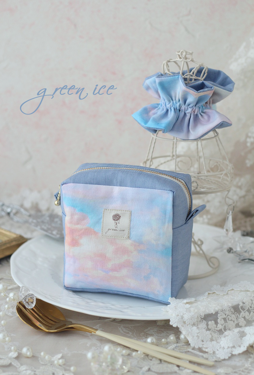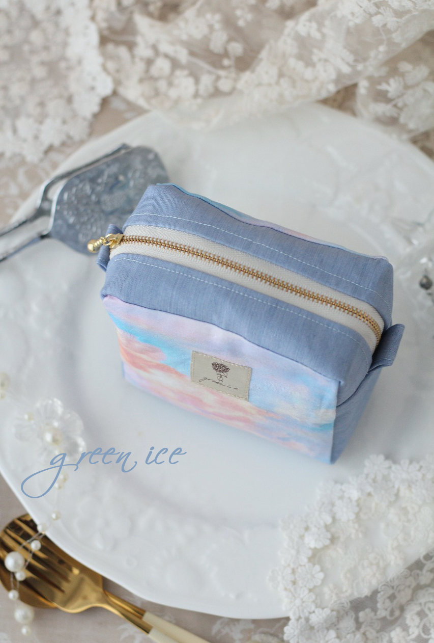 【minneさんにて販売中】朝焼け空色のスクエアポーチ