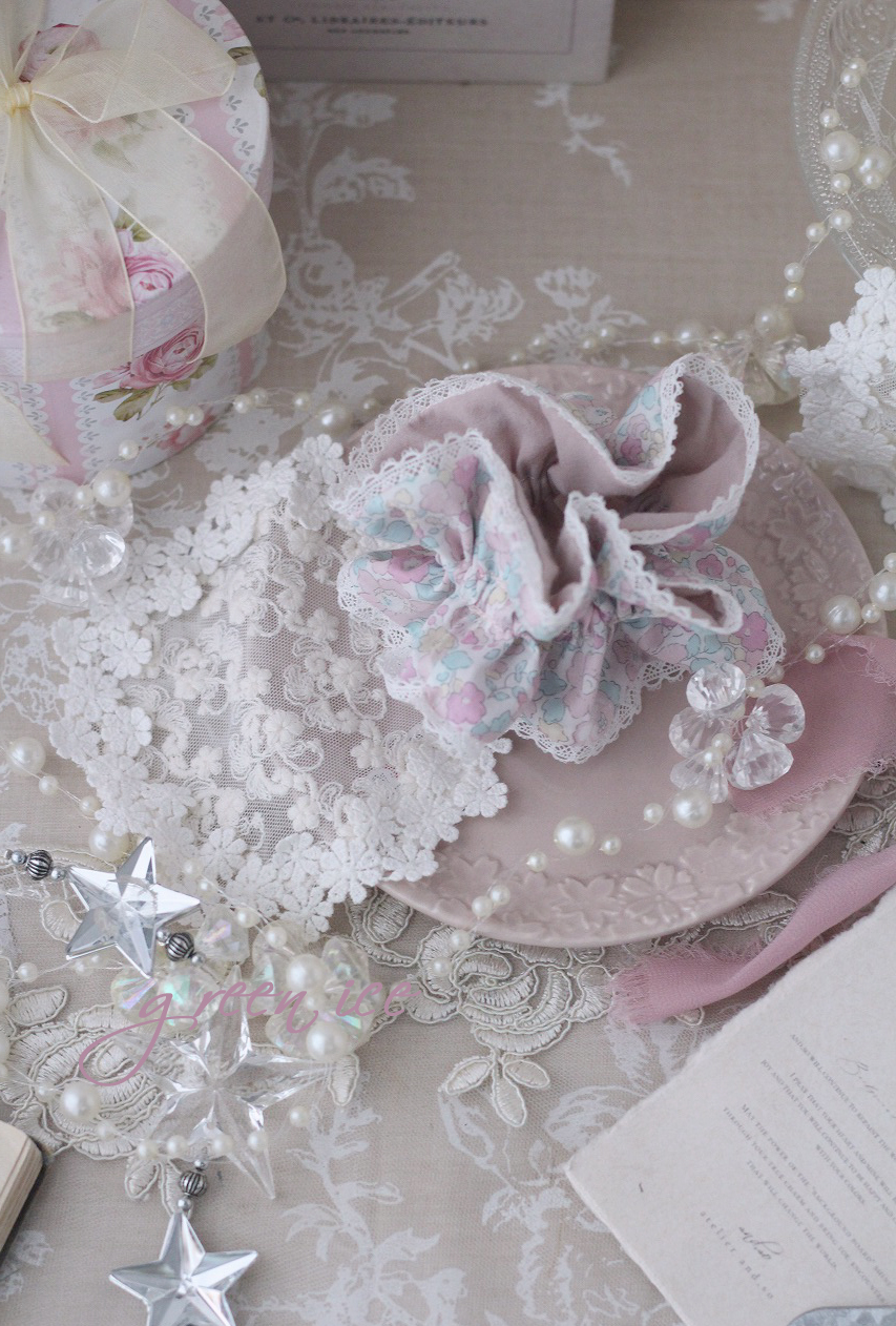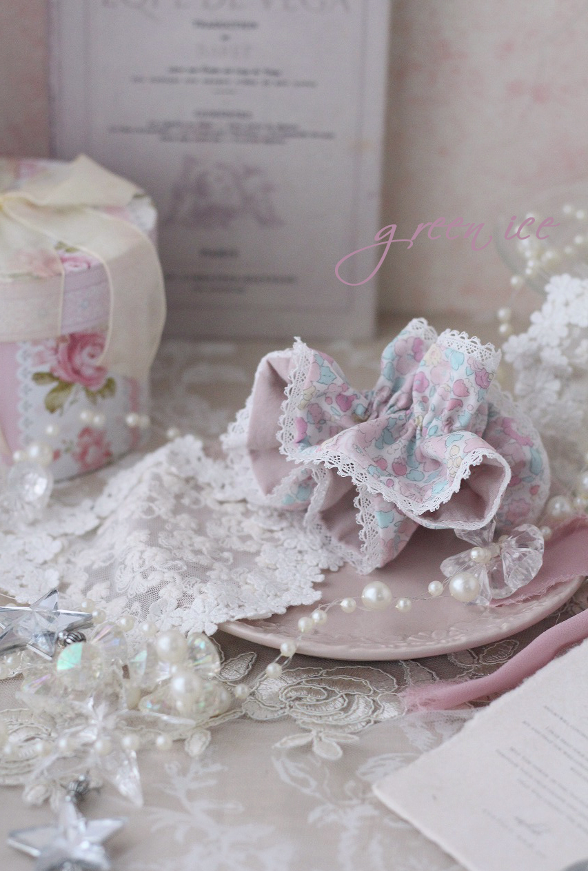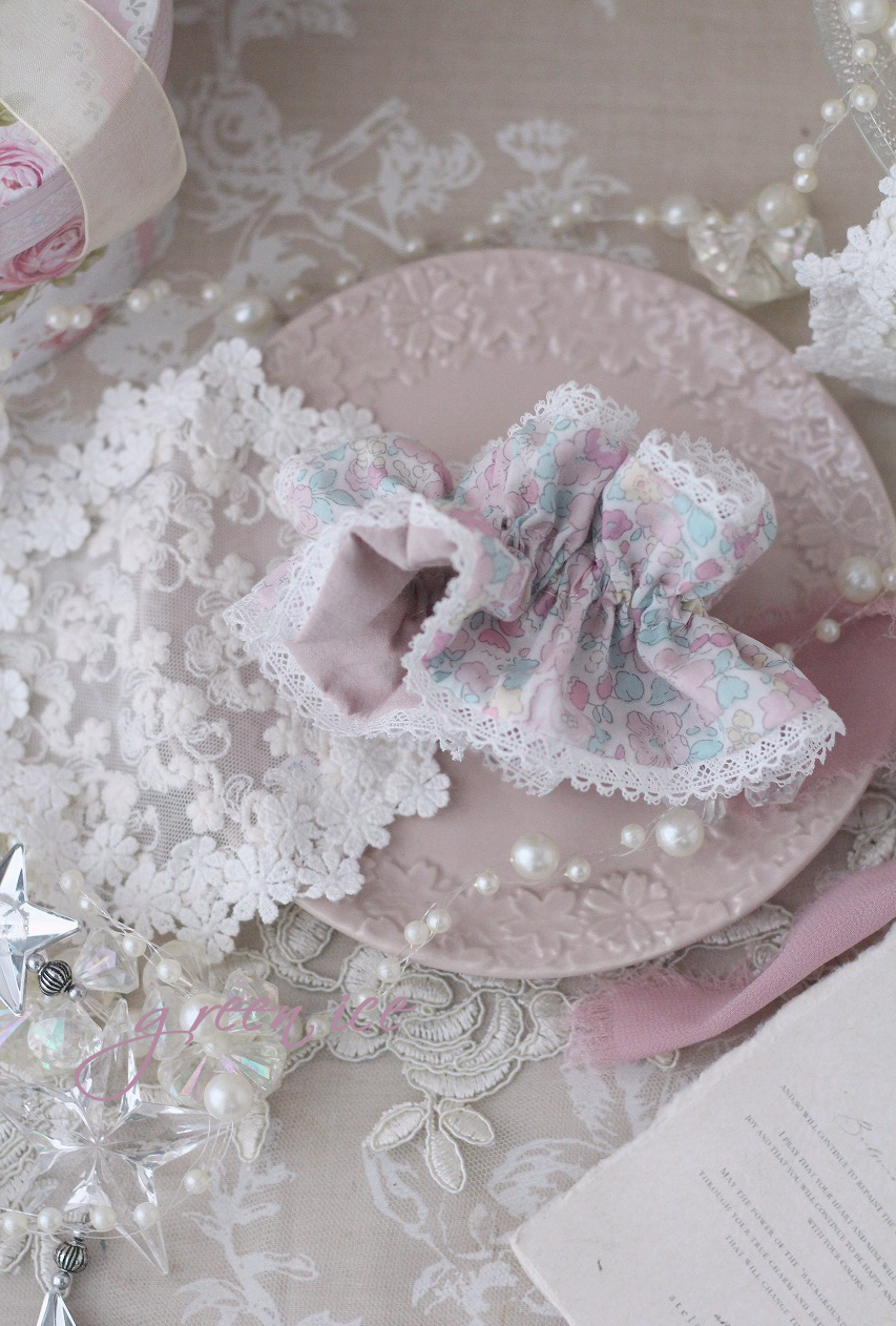 写真は、今日からminneさんにて販売開始しました、シュシュになります♪