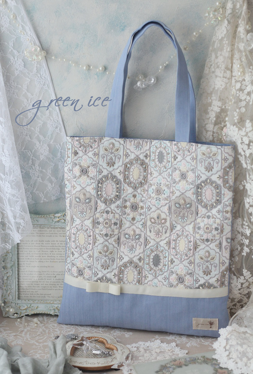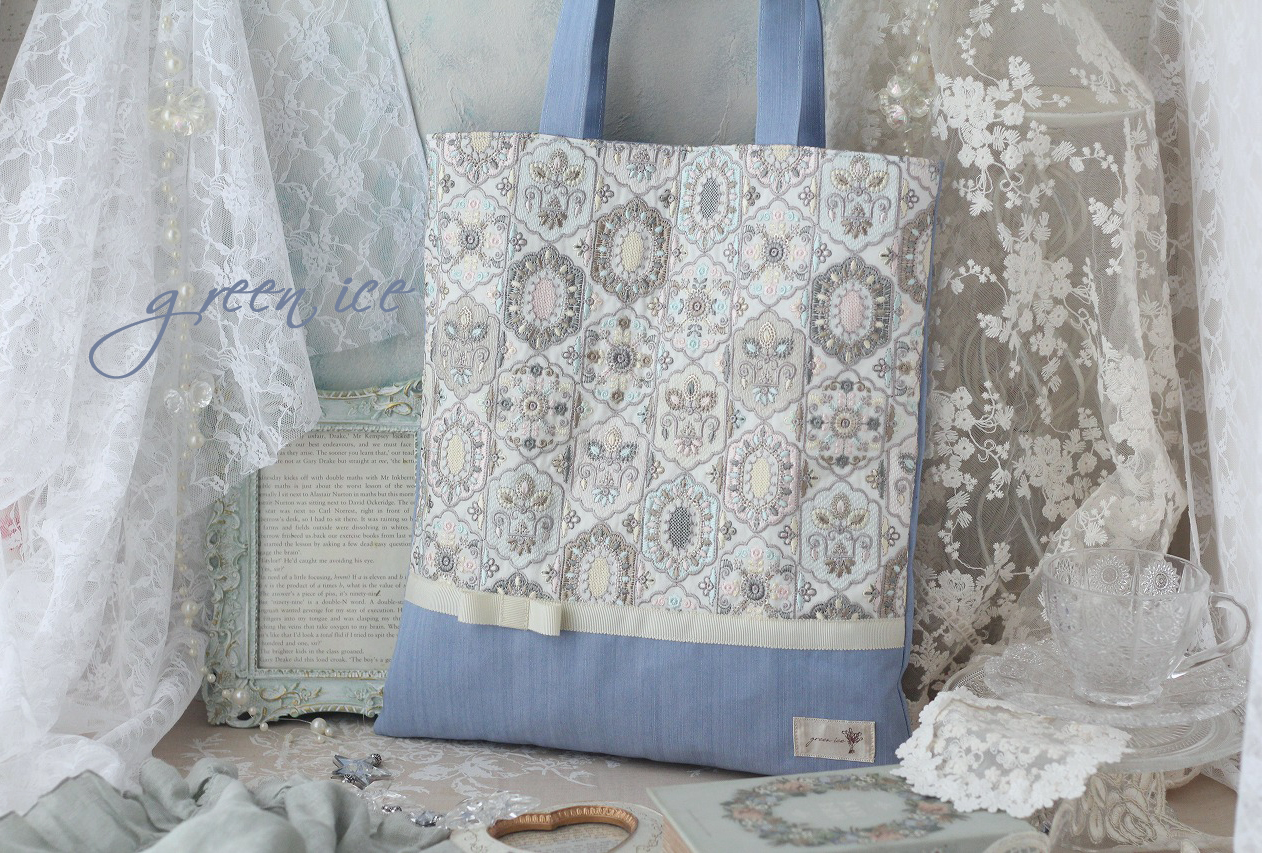 インド刺繍リボントートバッグ<フェアリードリーム>(アイスブルー)、販売開始しました♪