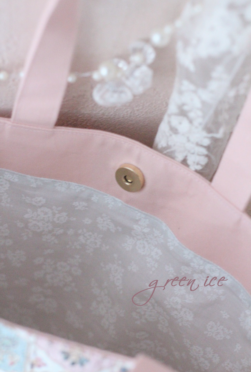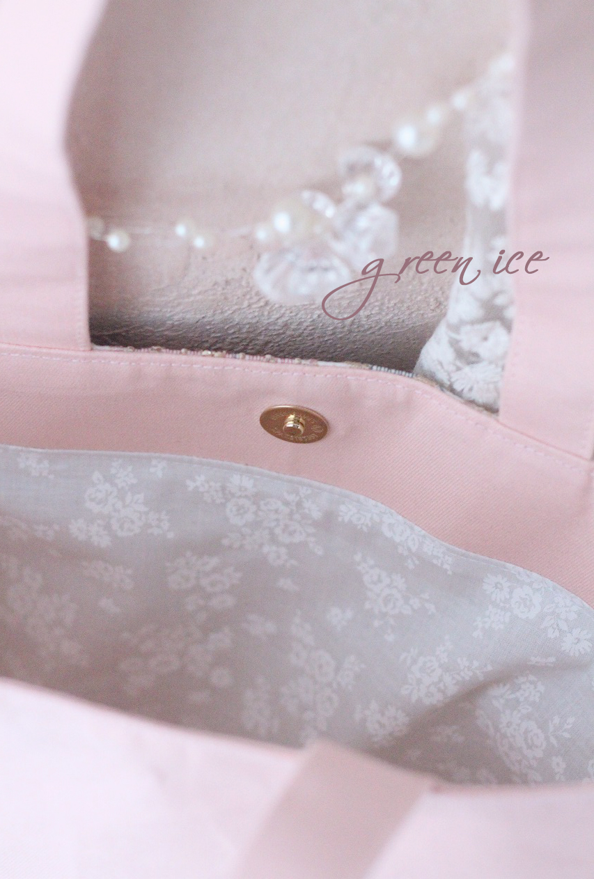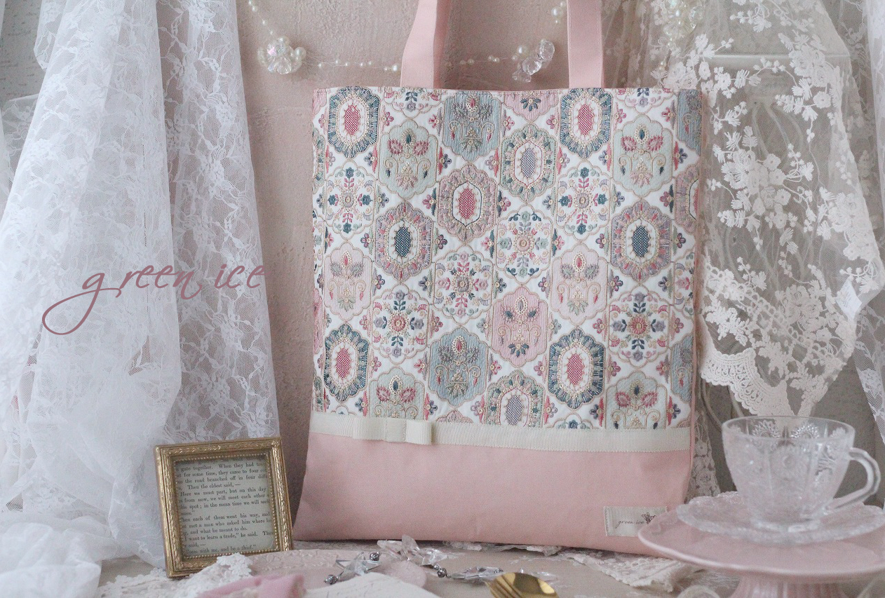 インド刺繍リボントートバッグ<フェアリードリーム>(ピンクグリーン)、販売開始しました♪