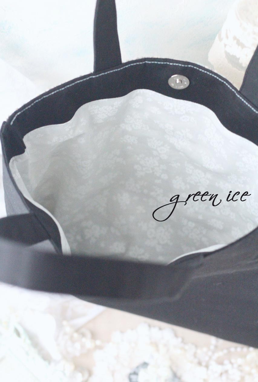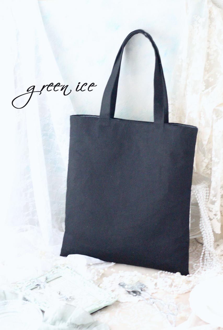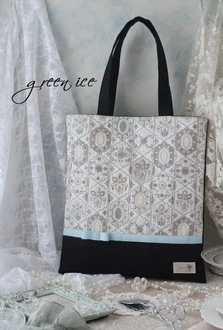 オーダー、インド刺繡リボントートバッグ<フェアリードリーム>(アイスブルー・ブラック)